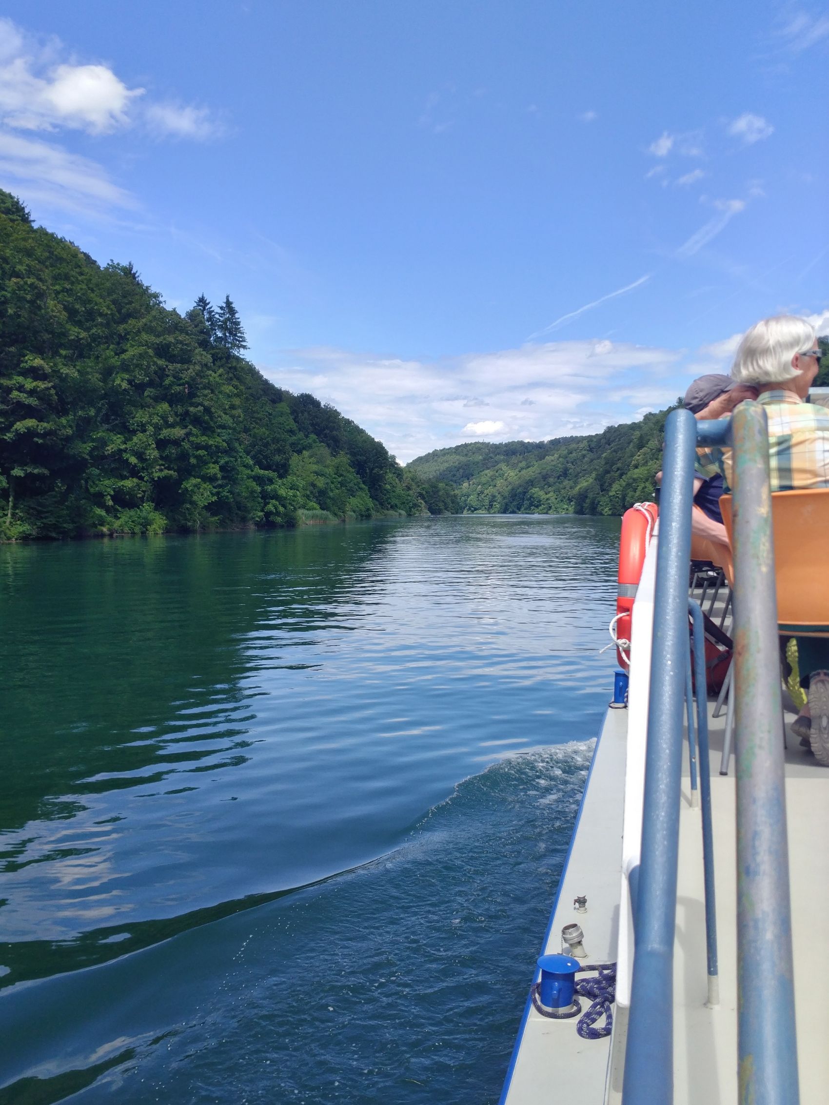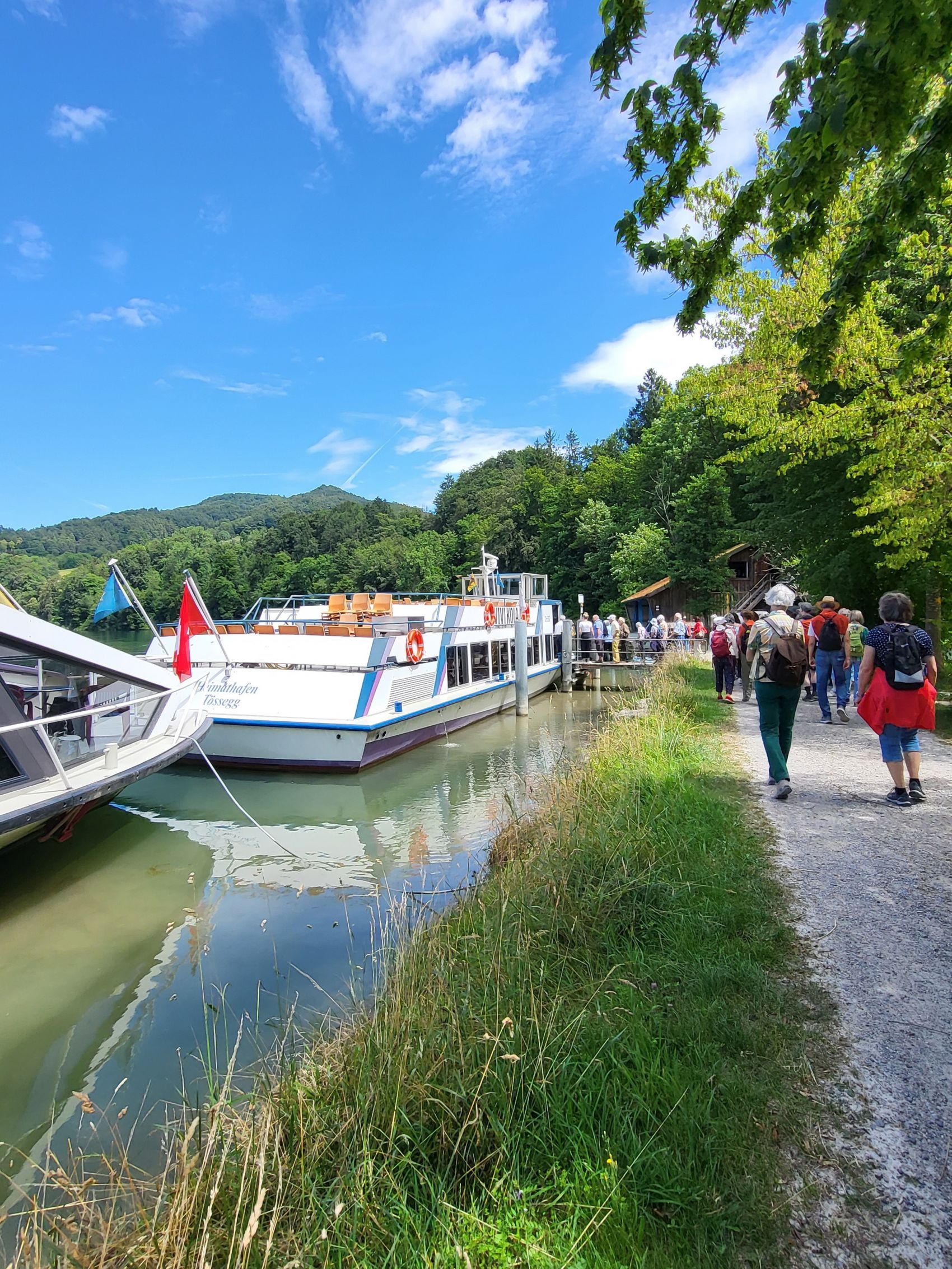 Die Reise startete in St.Gallen und führte die aufgestellte Gruppe via Winterthur und Bülach nach Eglisau. Je nach Wunsch konnten sich die Freiwilligen in Eglisau der Gruppe mit oder ohne Wanderung anschließen, beides mit dem Ziel Restaurant Tössegg. An diesem wunderschönen Ort verweilten wir und wurden mit einem herrlichen Mittagessen mit Blick auf den Rhein und die Töss verwöhnt. Nach dem Mittagessen wartete ein stattliches Boot auf die Weiterreise an der Schifflände, das die fröhlichen IDEM-Mitglieder via Rhein nach Rüdlingen brachte. Von dort aus ging es mit dem Postauto und der Bahn durch unbekannte, malerische Zürcher Landschaften via Winterthur wieder nach Hause.