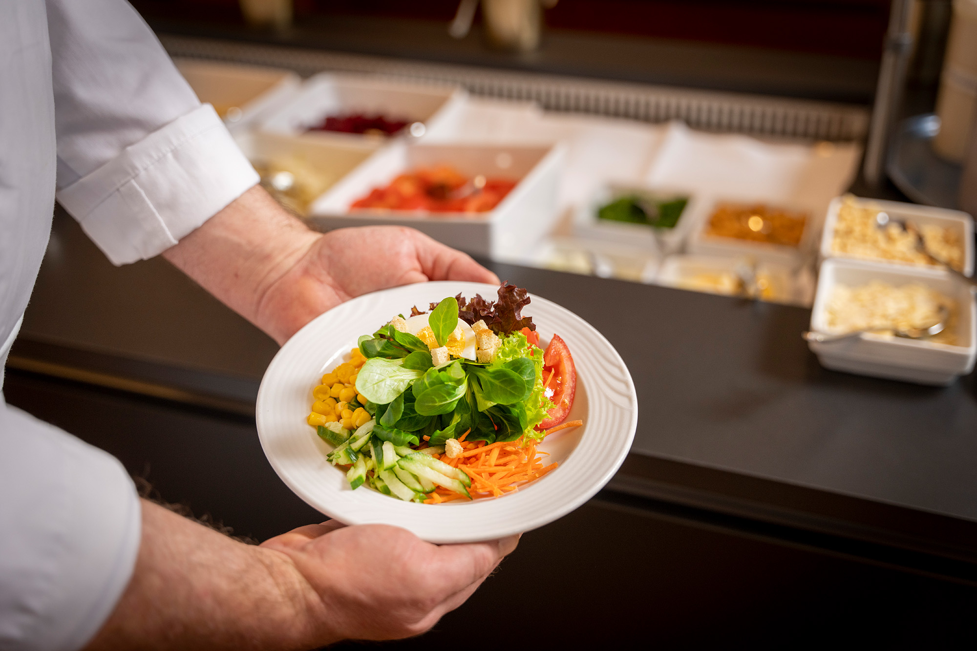 Unser Küchenteam verwöhnt unsere Bewohnerinnen und Bewohner täglich mit abwechslungsreichen Gerichten, angepasst an individuelle Vorlieben und Bedürfnisse. Sämtliche Mahlzeiten werden liebevoll, kreativ und vorzugsweise aus regionalen Erzeugnissen zubereitet. Angehörige sowie Besucherinnen und Besucher sind herzlich willkommen.